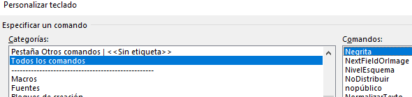 3- Abajo selecciona donde dice todos los comandos y a la derecha busca la palabra Negrita.