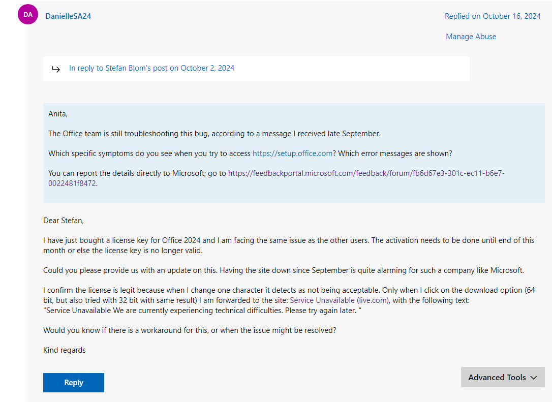 Como Stefan Blom ha compartido, nos tememos que el problema podría estar en el servicio de backend, comprenda que el soporte del foro puede tener recursos limitados y permiso para confirmar y verificar más a fondo el problema relacionado con el servicio de backend, es necesario involucrar más recursos para ayudarlo aún más.