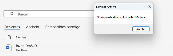 Entendemos que desea eliminar la información de documentos sospechosos compartidos en OneDrive.