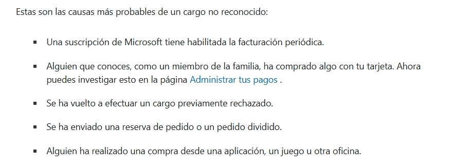 Si se trata de un cargo inesperado de su banco, tarjeta de crédito o cualquier otro proveedor de pagos, verá Microsoft en su estado de cuenta.