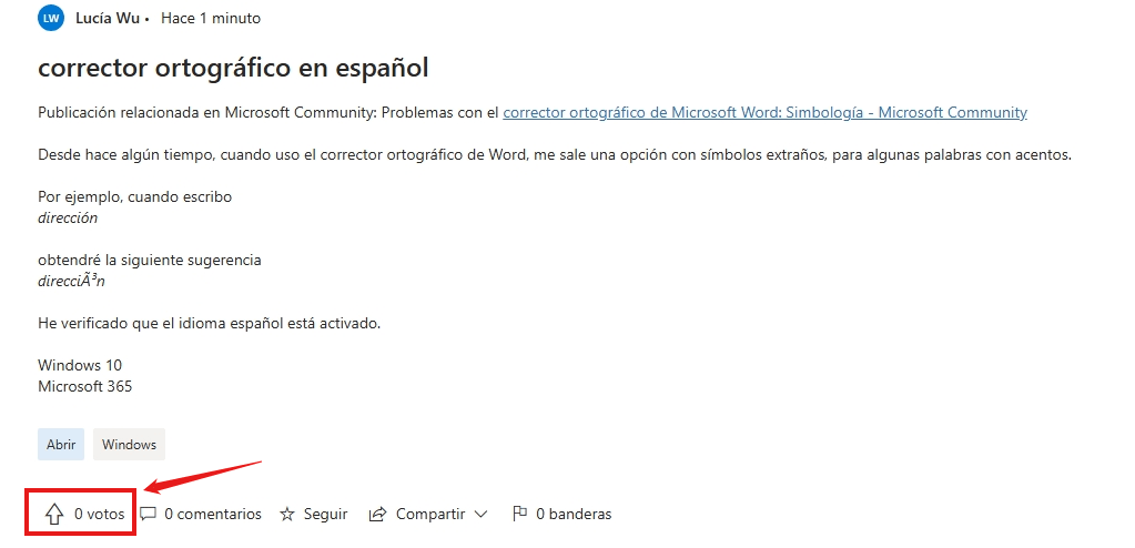 Cuanto mayor sea el número de votos, más probable será que el equipo de desarrollo se centre en mejorar el corrector ortográfico.