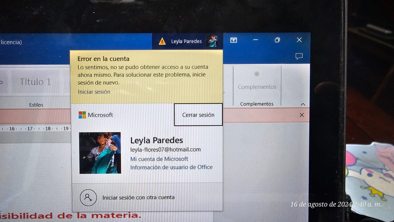 - Esto instala una versión anterior de Microsoft 365 y no se puede realizar ninguna actualización hasta que se corrija el error. Deshabilite la opción correspondiente en Word 365, **Archivo**, **Cuenta**, **Opciones de actualización**, **Deshabilitar actualizaciones**.