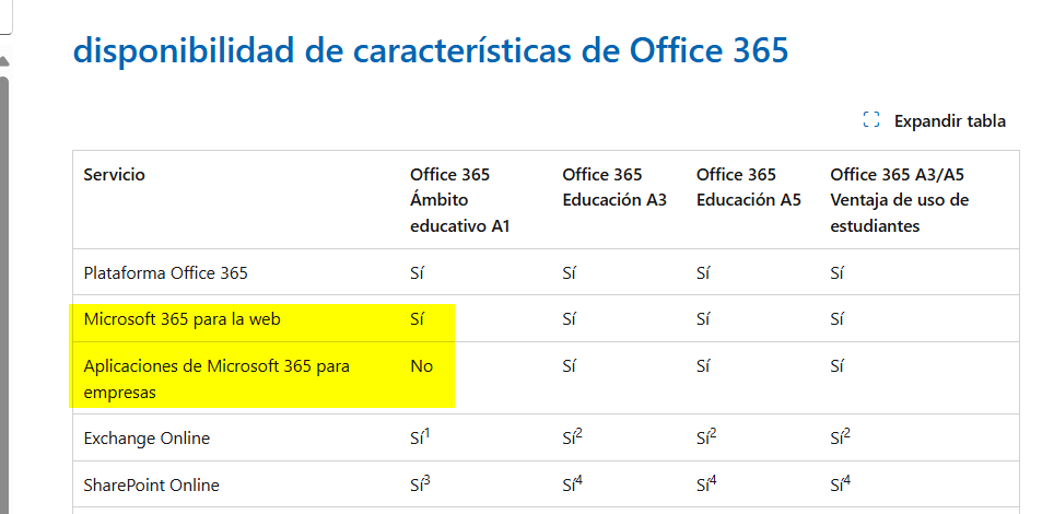 Si necesita las aplicaciones de escritorio, su escuela puede ofrecer una actualización a una licencia A3 o A5. O puede comprar una suscripción diferente con su cuenta personal. Puede consultar estas suscripciones que incluyen aplicaciones de escritorio de Office.