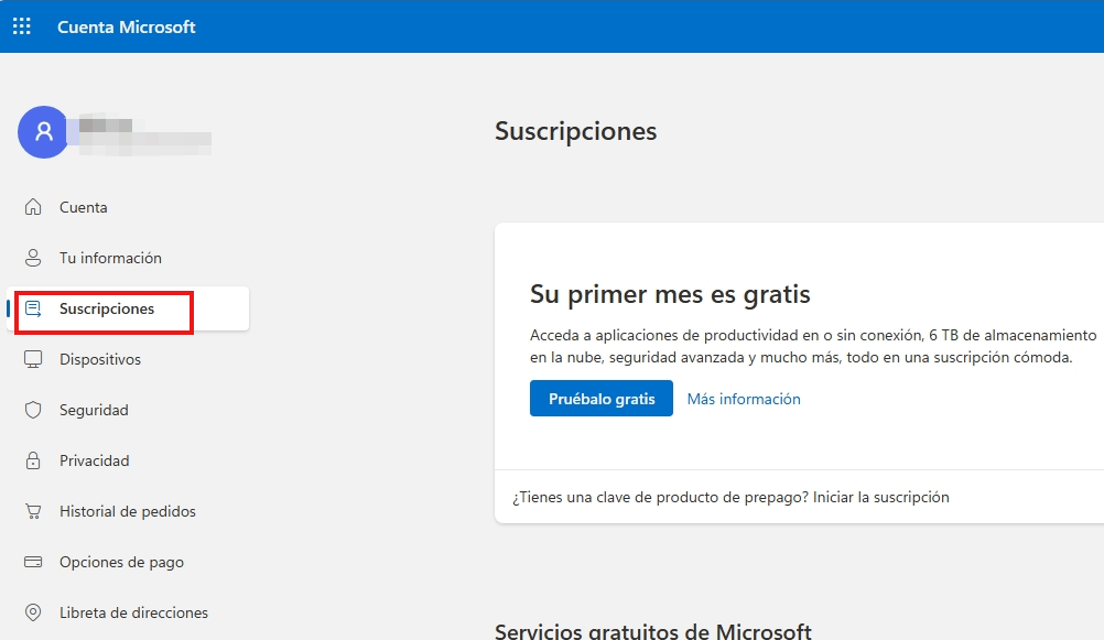 Puede comenzar confirmando la información del producto para el contracargo correspondiente en la pantalla Servicios y suscripciones de su cuenta de Microsoft: Cuenta de Microsoft | Suscripciones