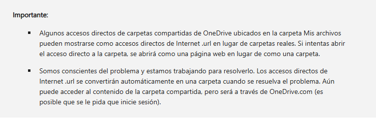 El problema de los accesos directos a carpetas compartidas de OneDrive que aparecen como accesos directos de Internet sigue siendo un problema conocido que ha estado presente. Desafortunadamente, el problema aún está en proceso de solución. Entiendo la cantidad de inconvenientes que esto puede causar, y lo siento. El equipo de desarrollo de OneDrive dice que está al tanto de investigar este problema y ha publicado las siguientes instrucciones: