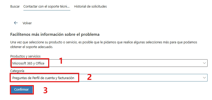 - Desplázate hasta la parte inferior de la página y haz clic en "Contactar con el servicio de asistencia".