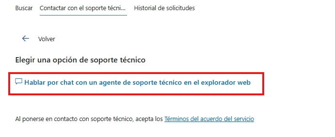 - Finalmente, elija "Chatear con un agente de soporte a través del navegador web".