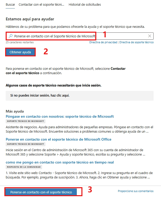 Póngase en contacto con el soporte técnico de Microsoft: