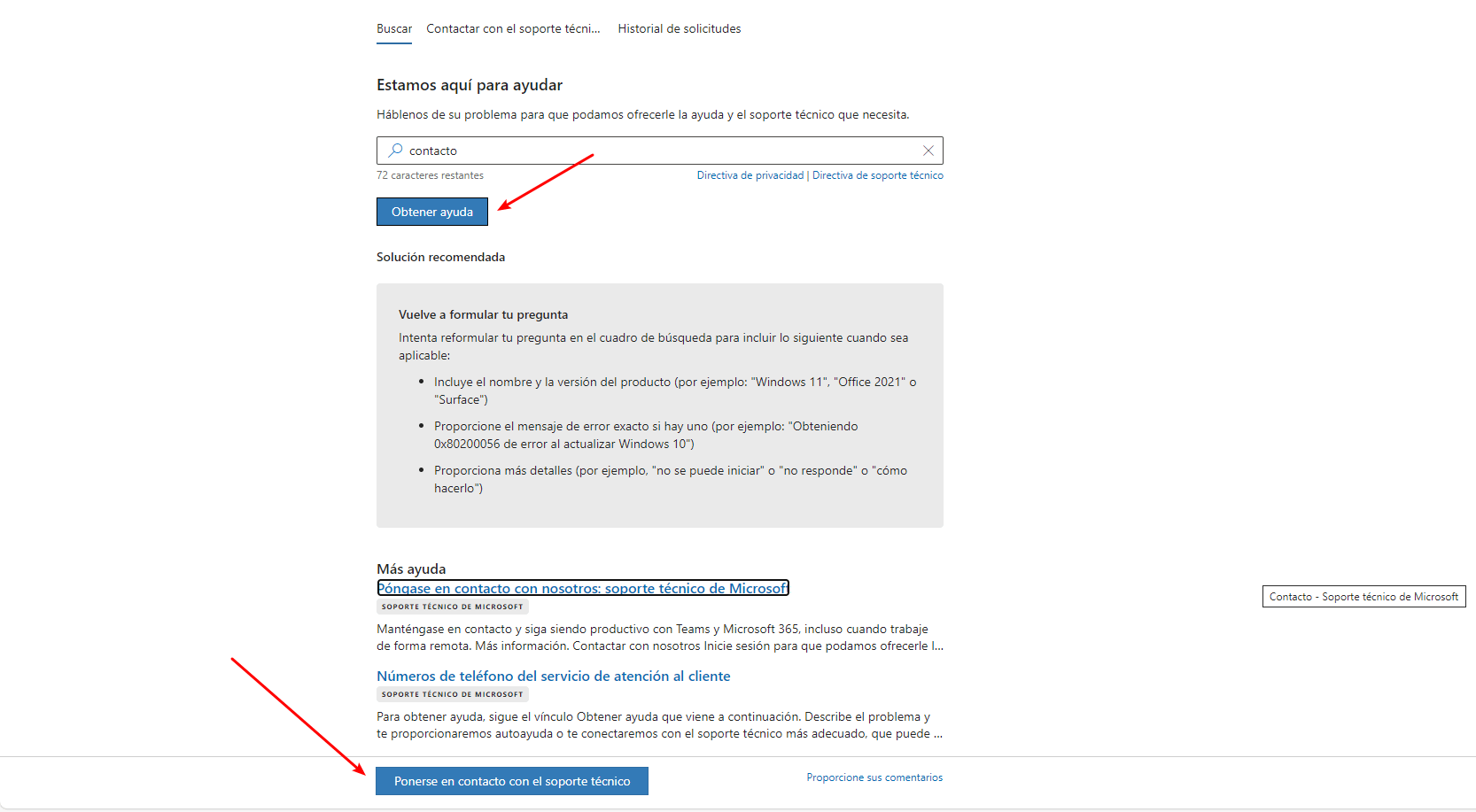 - Visite este sitio web: Contacto - Soporte técnico de Microsoft