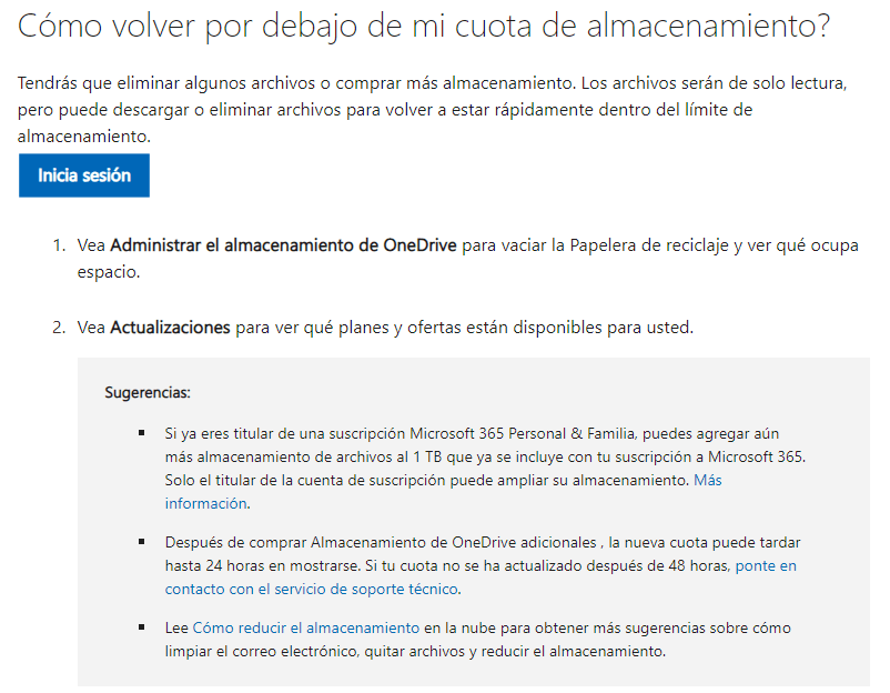 -<Mi OneDrive indica que está lleno - Soporte técnico de Microsoft>