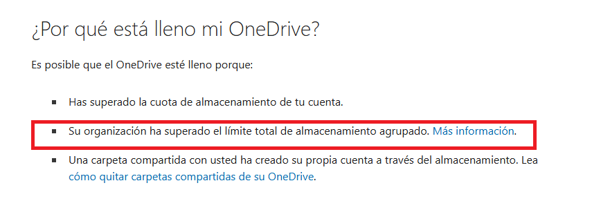 Actualmente, hemos recibido algunos usuarios que informan de que reciben algunos mensajes que indican que el almacenamiento de su organización está lleno y que su sitio de OneDrive para la Empresa será de solo lectura.