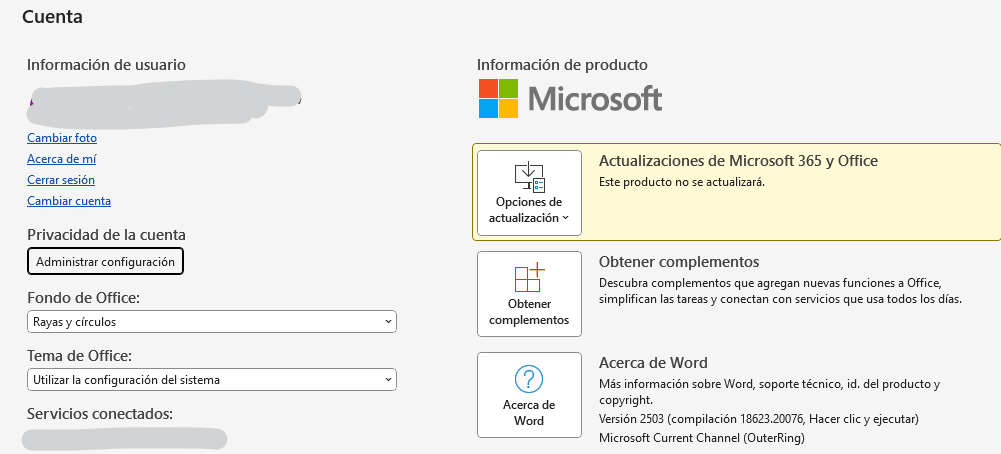 Si puede abrir cualquier aplicación de Office normalmente, como Word -> haga clic en Archivo -> Vista de cuenta y, a continuación, comparta la información con nosotros. (Tenga cuidado de cubrir su información privada cuando vuelva a compartirla)