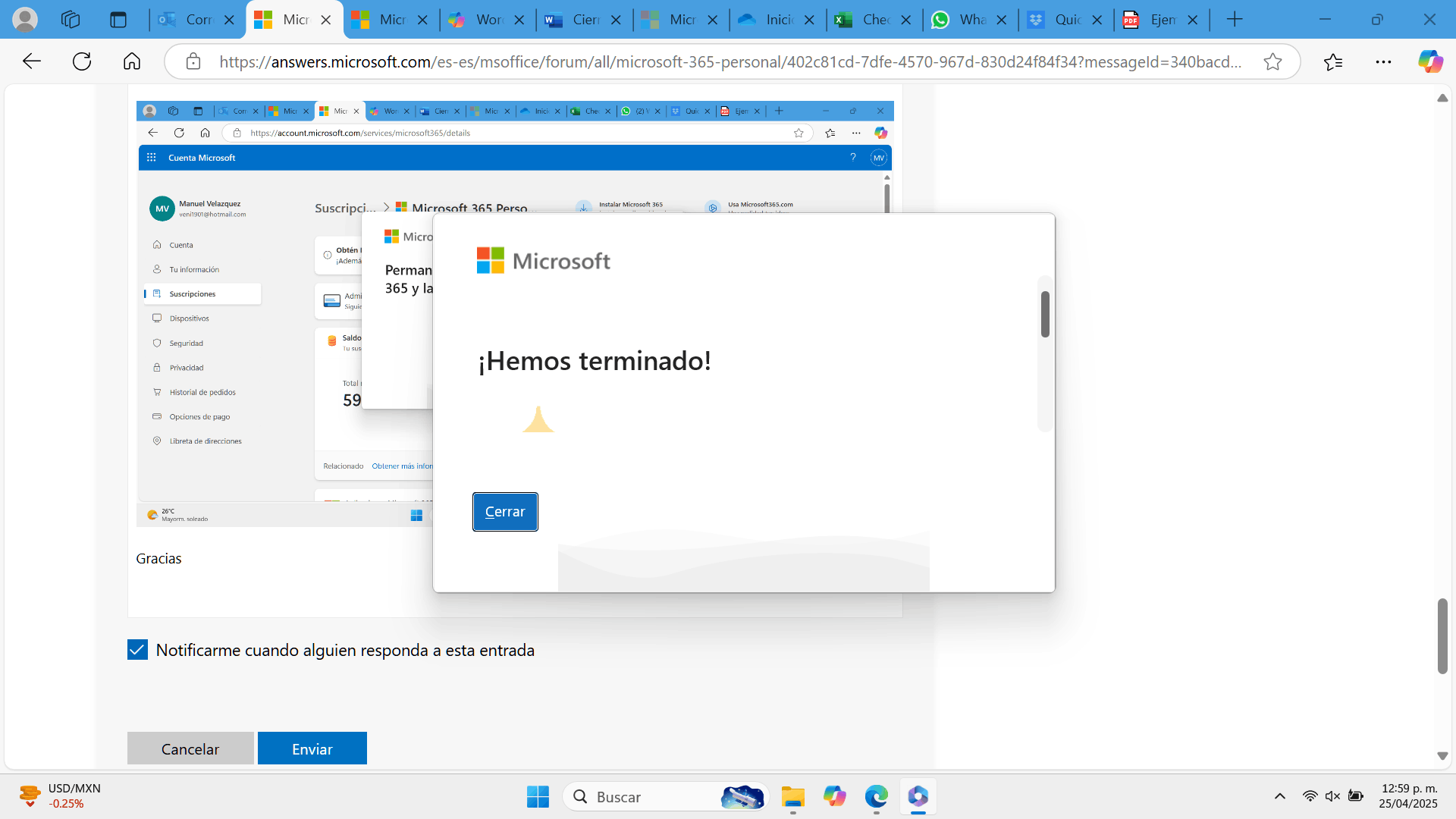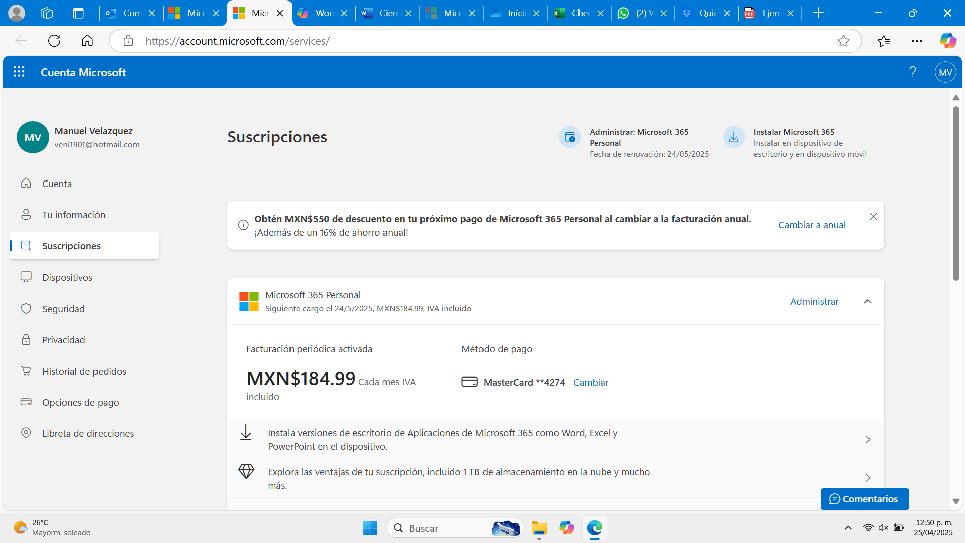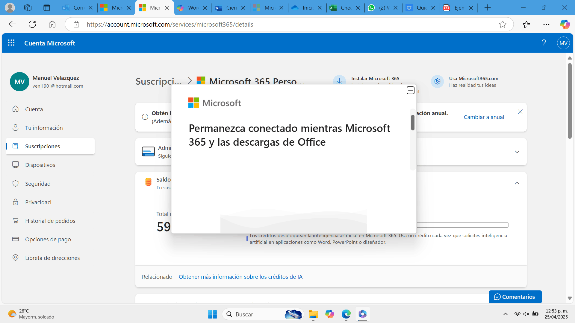 En su cuenta, ¿ve su suscripción a Microsoft 365 en la lista? ¿Es correcta la fecha de vencimiento indicada?