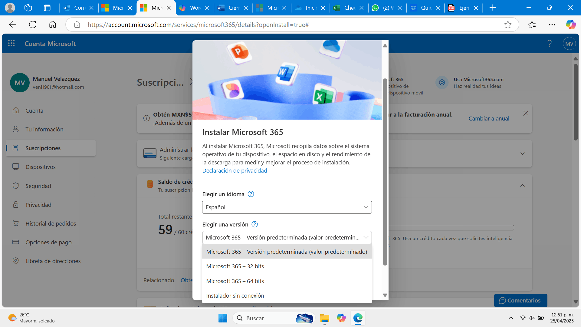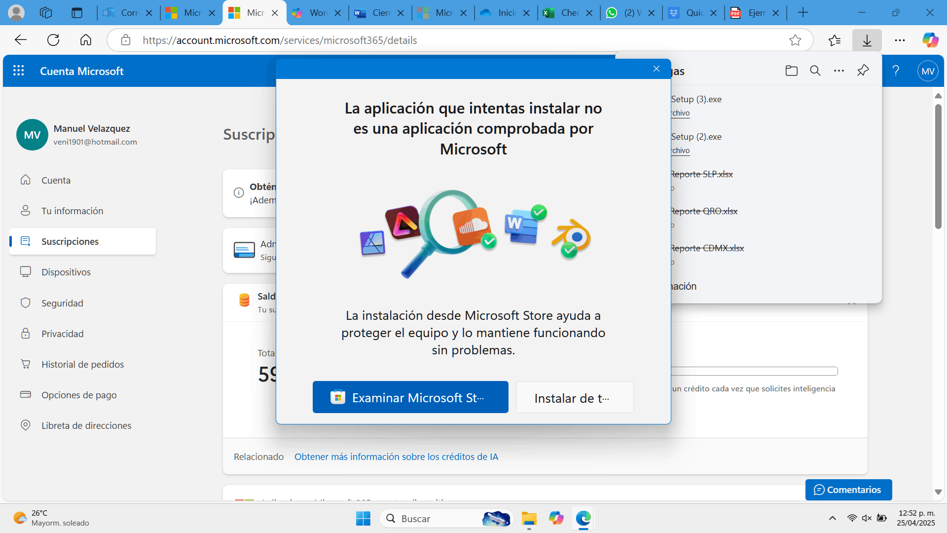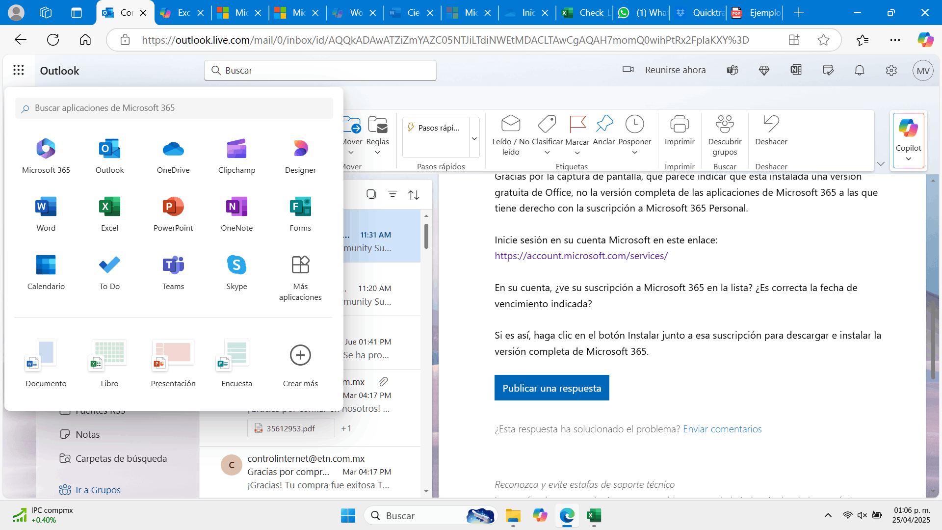 En su cuenta, ¿ve su suscripción a Microsoft 365 en la lista? ¿Es correcta la fecha de vencimiento indicada?