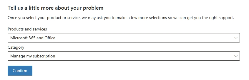 - Elija Microsoft 365 y Office u Otros productos en la pestaña Productos y servicios.