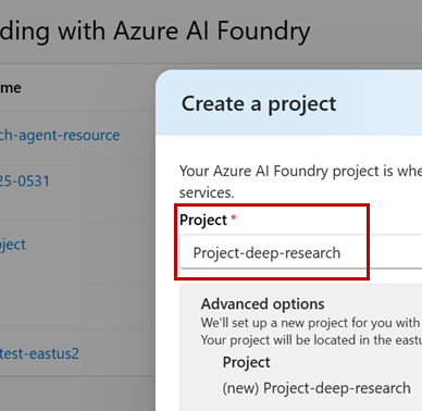 o3, no se requiere ninguna solicitud para acceder alo3-deep-researchmodelo. De lo contrario, rellene el formulario de solicitud. - Una suscripción de Azure con la capacidad de crear un proyecto de AI Foundry, Fundamento con Búsqueda de Bing, un modelo de investigación profundo y recursos del modelo GPT Configuración de su entorno en las regiones Oeste de EE. UU y Este de Noruega.