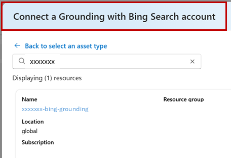 - Conexión con el recurso de la Herramienta de Búsqueda de Bing para conectarse al proyecto Foundry.