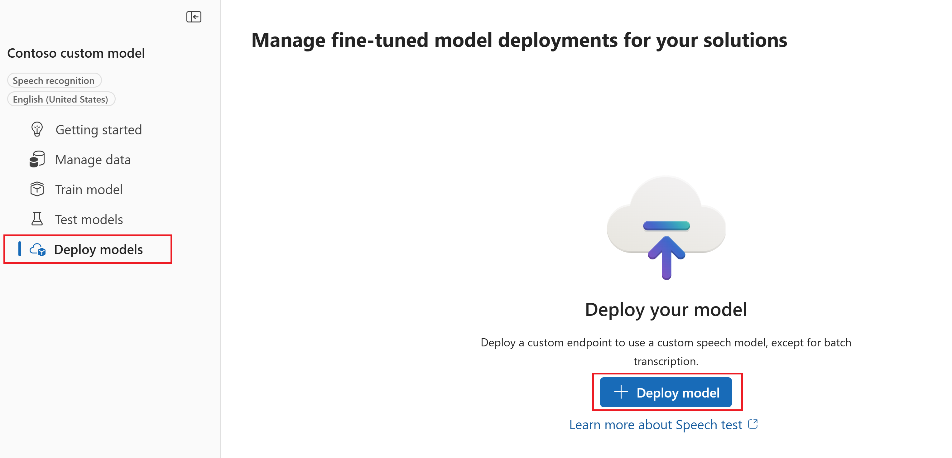 - Seleccione Voz personalizada> El nombre del proyecto >Implementación de modelos.