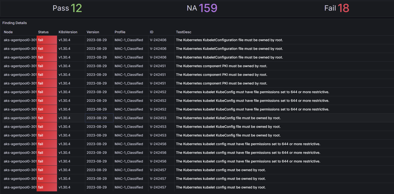 | V-242386 | El servidor de API de Kubernetes debe tener deshabilitada la marca de puerto no segura. | NTF | Esta comprobación está en desuso en v1.24.0 y versiones posteriores. |