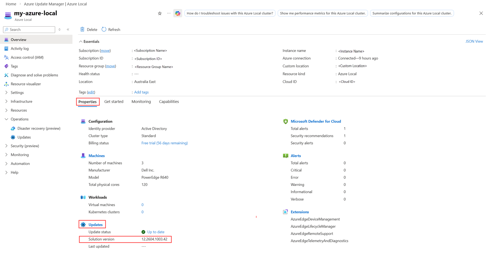 Identifique la versión de la solución para la instancia local de Azure.