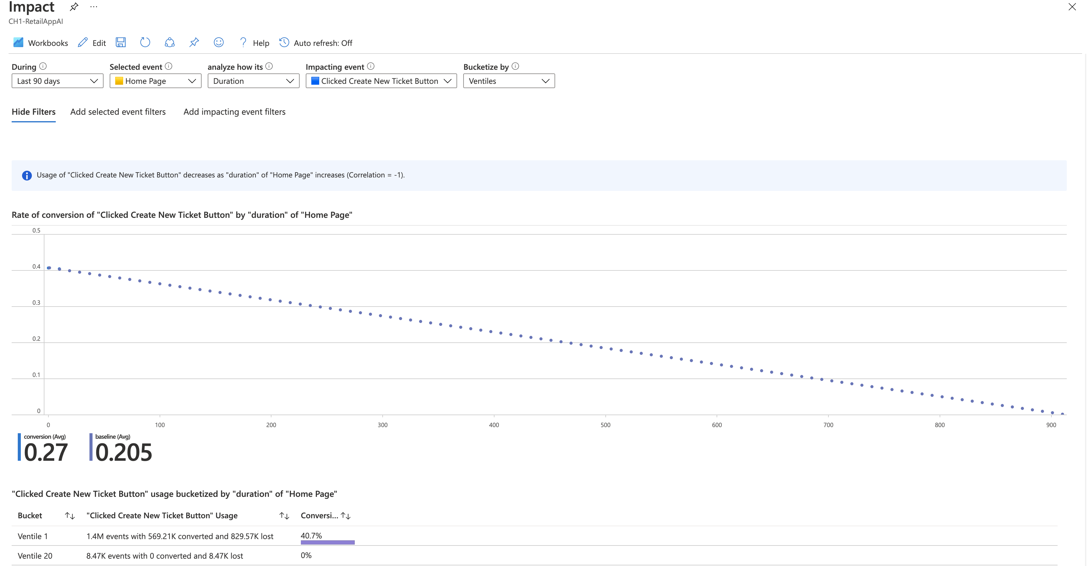 Análisis de impacto del usuario: analice cómo las métricas de rendimiento de la aplicación (por ejemplo, los tiempos de carga) influyen en la experiencia y el comportamiento del usuario, para ayudarle a priorizar las mejoras.