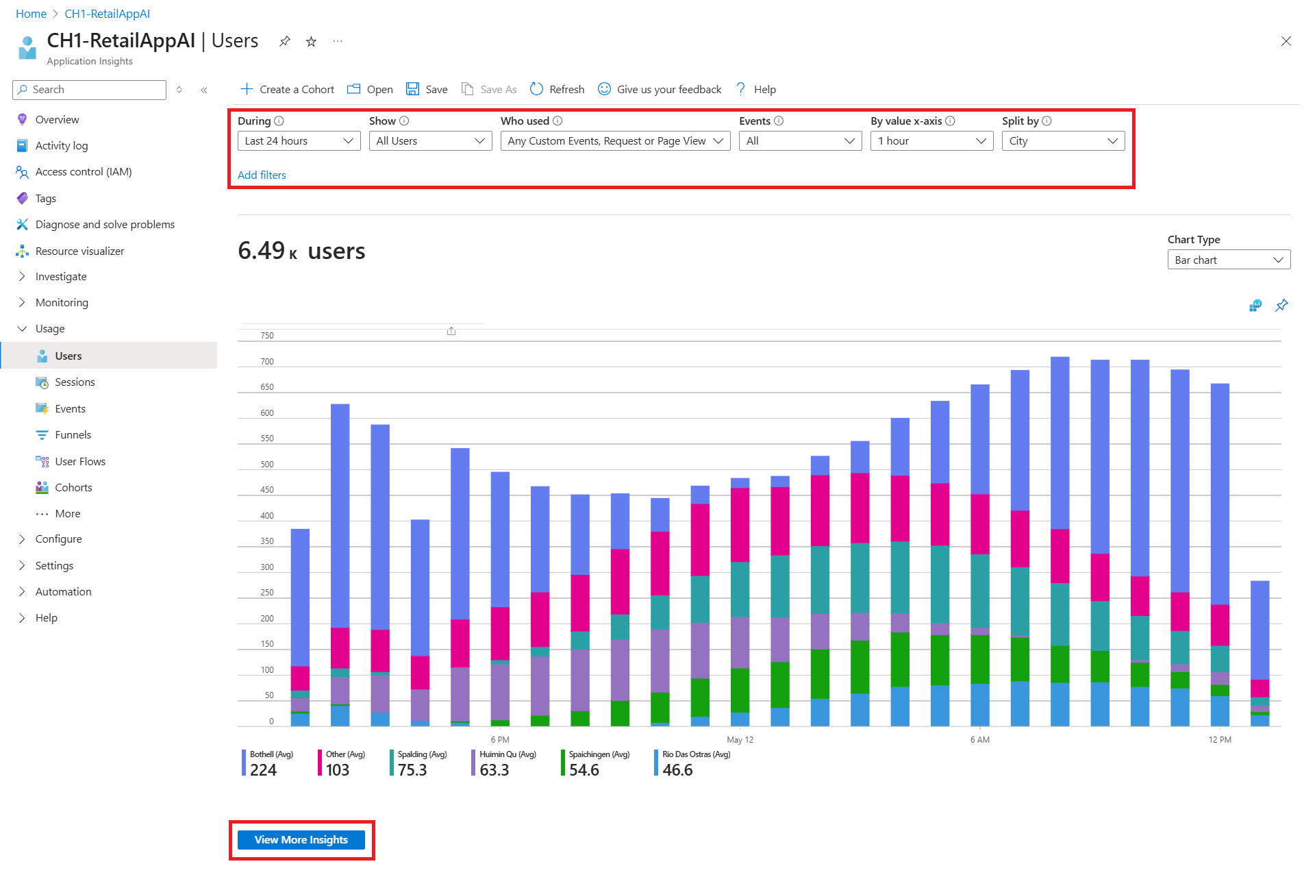 Application Insights es una eficaz herramienta de observabilidad que recopila datos de telemetría para mostrar cómo interactúan los usuarios con la aplicación. Esto incluye información sobre qué características son más populares, si los usuarios logran sus objetivos, dónde abandonan y si vuelven más adelante.