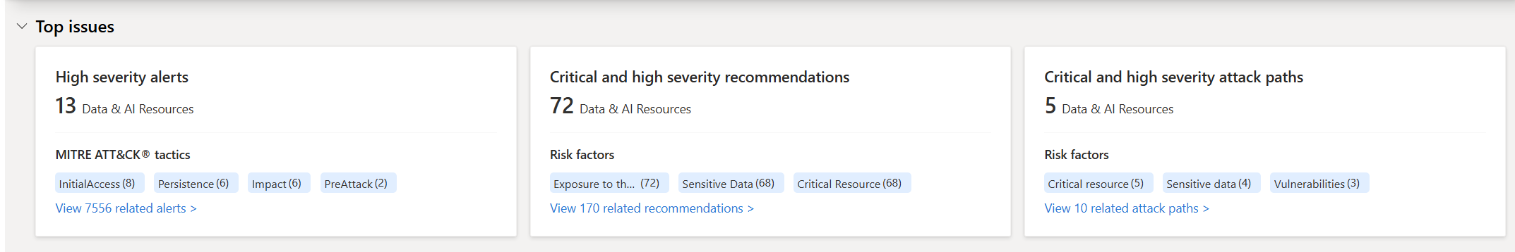 Una ventaja clave del panel de datos e IA es su capacidad para ver los problemas de seguridad de los datos y la IA más críticos de su organización. Esta característica le ayuda a tomar decisiones informadas y a adoptar medidas proactivas para mitigar los riesgos.