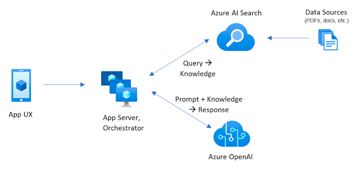 En este ejemplo se implementa una aplicación de chat mediante Python, Azure OpenAI Service y Retrieval Augmented Generation (RAG) en Azure AI Search para obtener respuestas sobre los beneficios para empleados en una empresa ficticia. La aplicación se inicializa con archivos PDF que incluyen el manual de empleados, un documento de beneficios y una lista de roles y expectativas de la empresa.