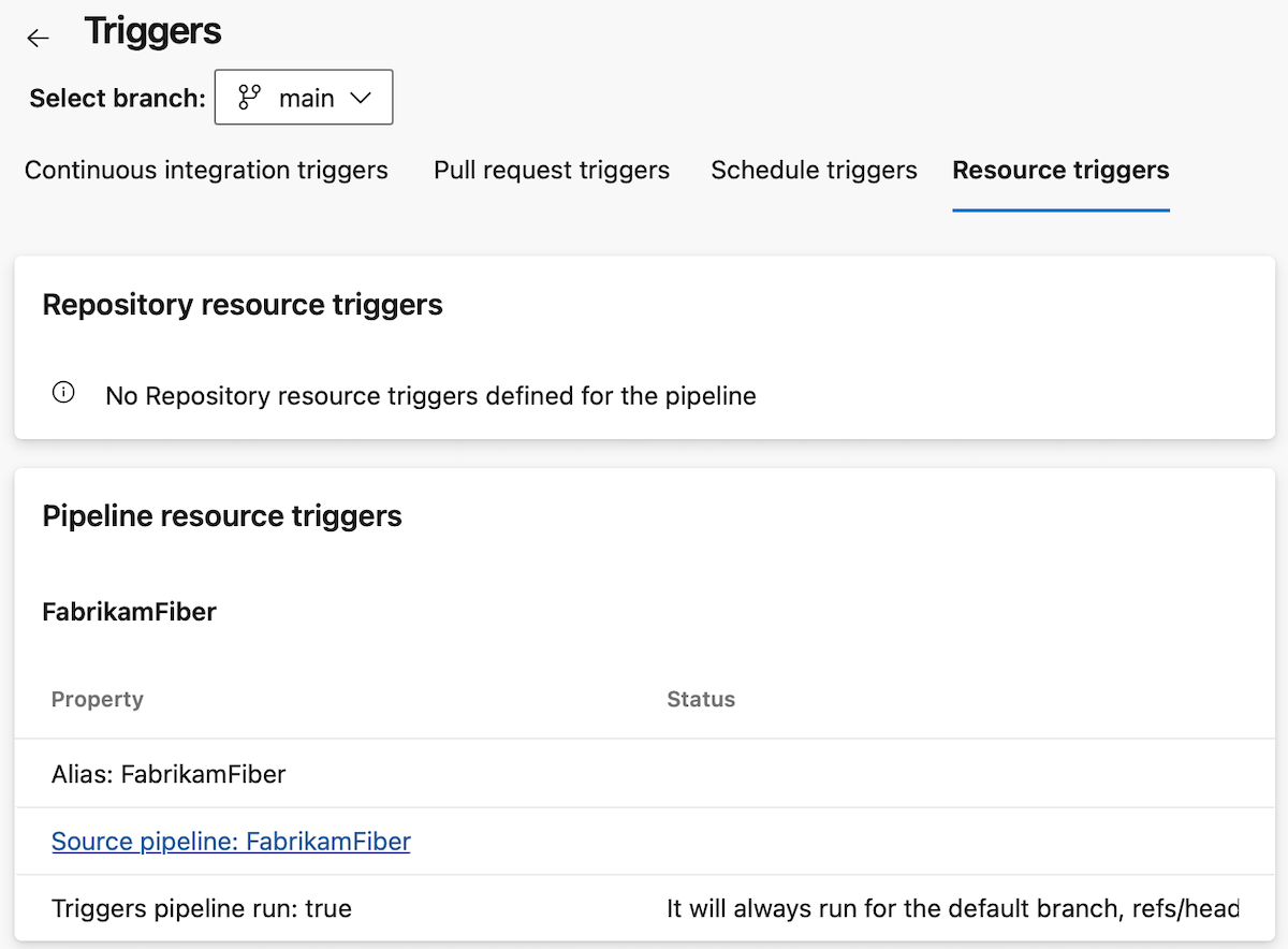 Las canalizaciones YAML proporcionan varias opciones eficaces para definir cuándo se debe ejecutar la canalización. No siempre es fácil determinar si la canalización está configurada para ejecutarse en respuesta a un evento, por ejemplo, cuando se ha completado una canalización de alimentación.