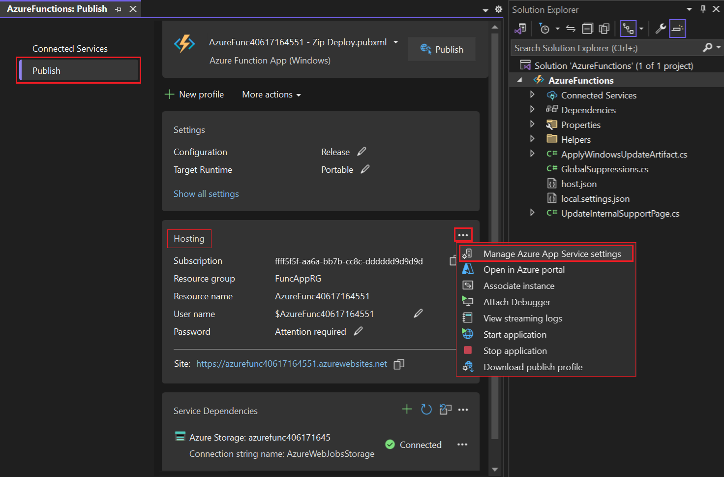En Visual Studio, vuelva a la página Publicar del proyecto AzureFunctions.