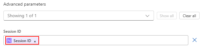 En la acción Ejecutar código de Python, en la lista Parámetros avanzados, seleccione Id. de sesión para agregar este parámetro a la acción.