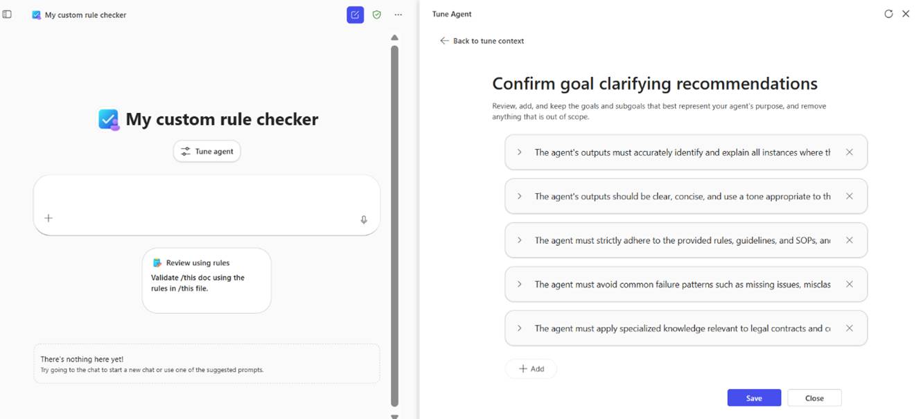 Puede guardar un agente de validación de documentos optimizado como agente especializado y compartirlo en toda la organización.