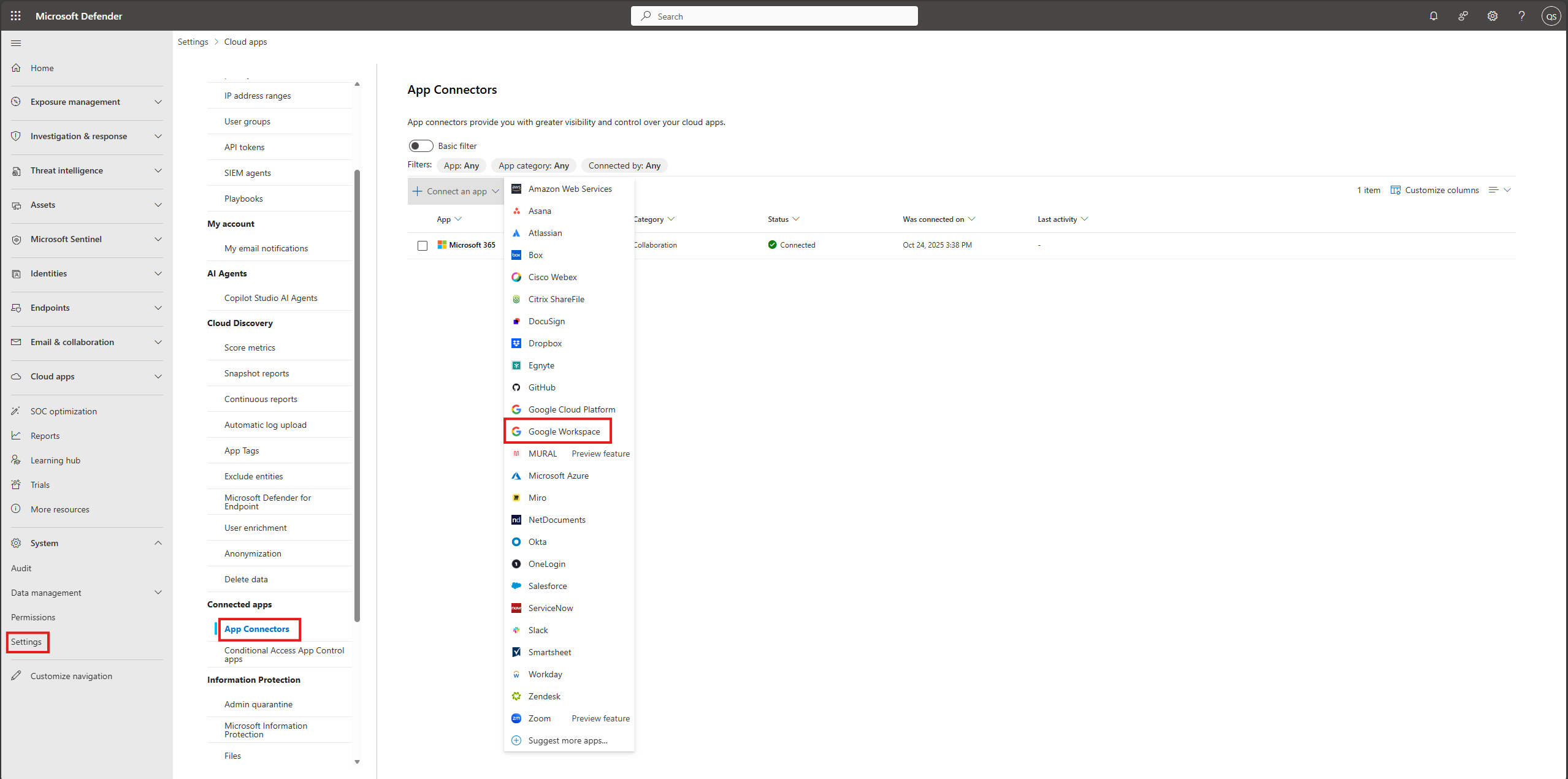 Conexión de Google Workspace a Microsoft Defender for Cloud Apps