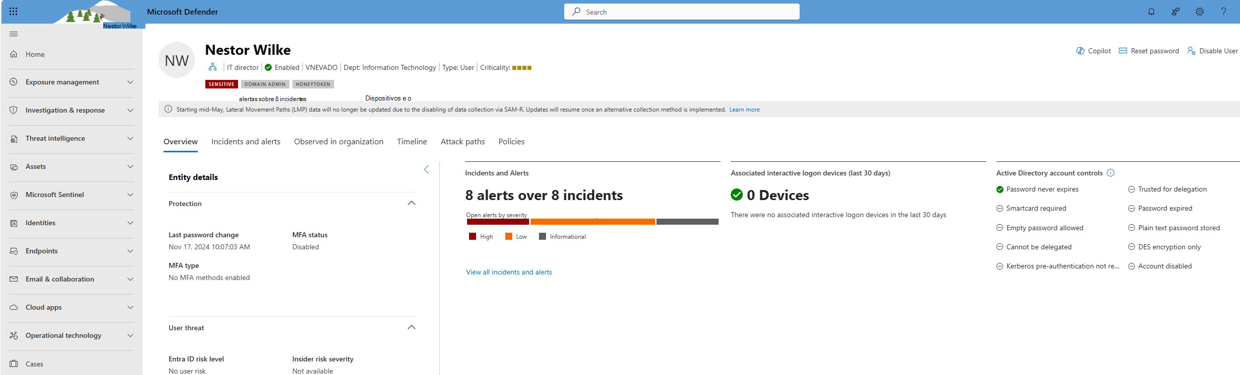 - Investigación de usuarios en Microsoft Defender XDR