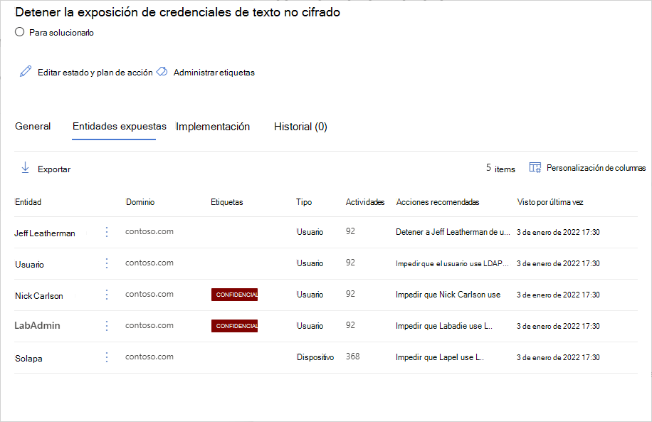 La eliminación de las credenciales expuestas de estos atributos reduce el riesgo de peligro de identidad y refuerza la posición de seguridad de la organización.