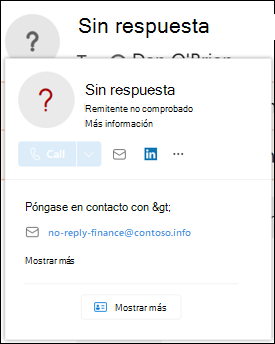 Indicadores de remitente no autenticados: disponible en la sección Consejos de seguridad & indicadores solo cuando la inteligencia de suplantación de identidad está activada. Consulte los detalles de la sección siguiente.