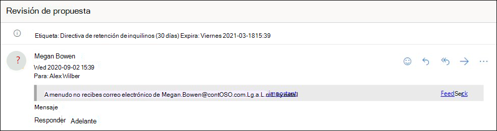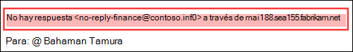 La protección de inteligencia de buzones de correo no funciona si el remitente y el destinatario se comunicaron previamente por correo electrónico. Si el remitente y el destinatario nunca se comunicaron por correo electrónico, la inteligencia del buzón puede identificar el mensaje como un intento de suplantación.
