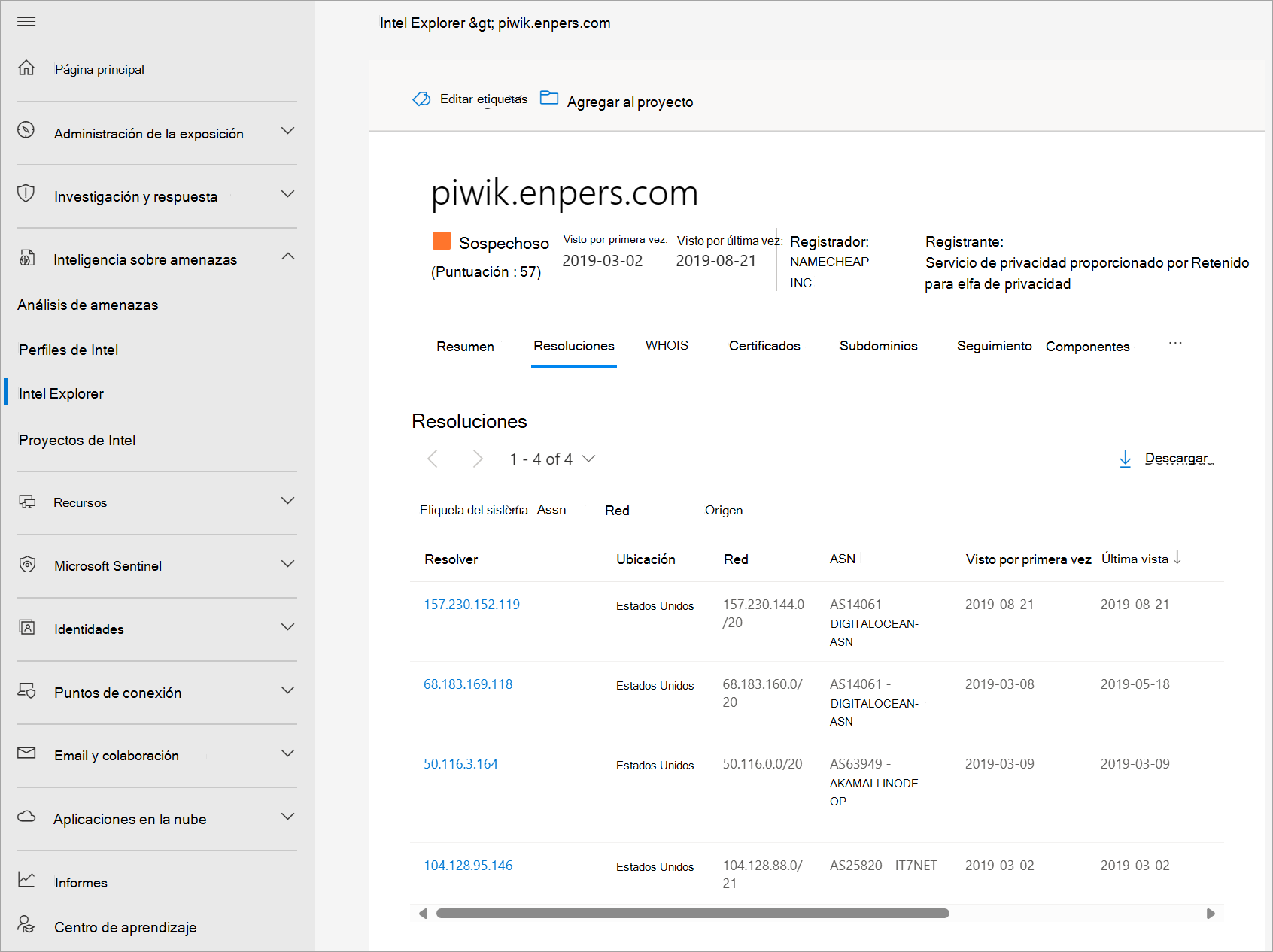 - Vaya alExplorador intel de Inteligencia> sobre amenazas.