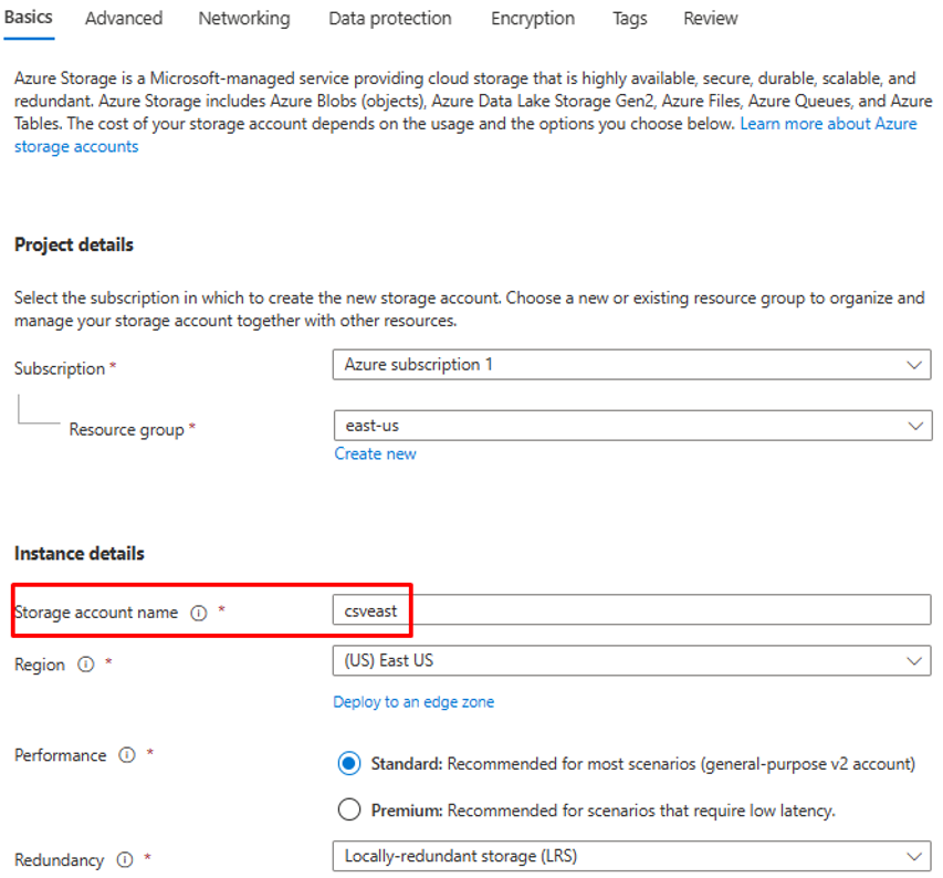 Paso 1: Creación de una cuenta de Azure Storage para hospedar el archivo CSV
