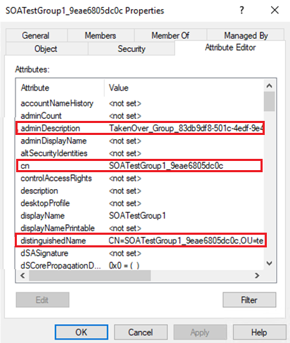 También puede confirmar que adminDescription y cn del grupo de destino están actualizadas.