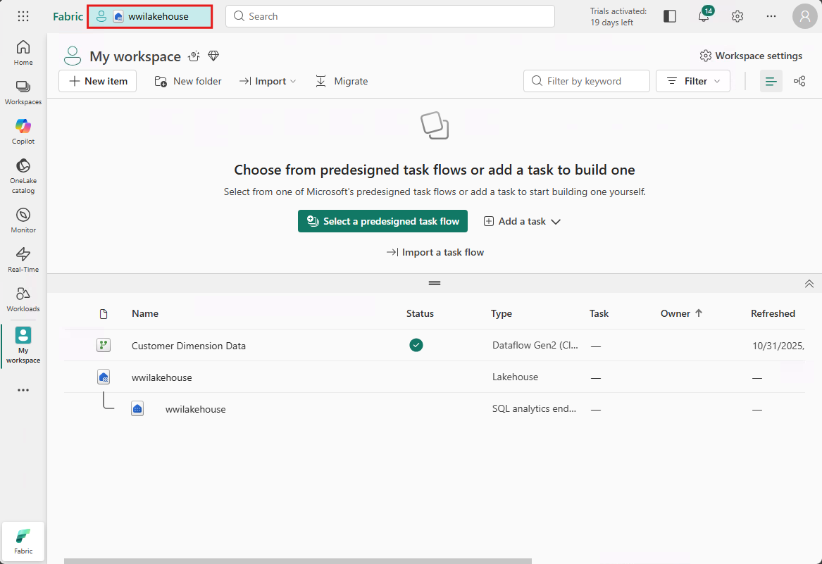 - Antes de crear un lakehouse, deberá crear un área de trabajo de Fabric.
