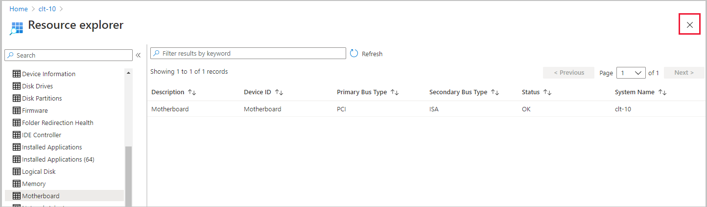 Desde el centro de administración de Microsoft Intune, puede ver el inventario de hardware para los dispositivos Administrador de configuración cargados mediante el Explorador de recursos.