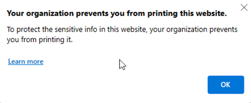 Su organización impide que imprima este sitio web: Aparece cuando la directiva de nivel 3 aplicada bloquea la impresión.