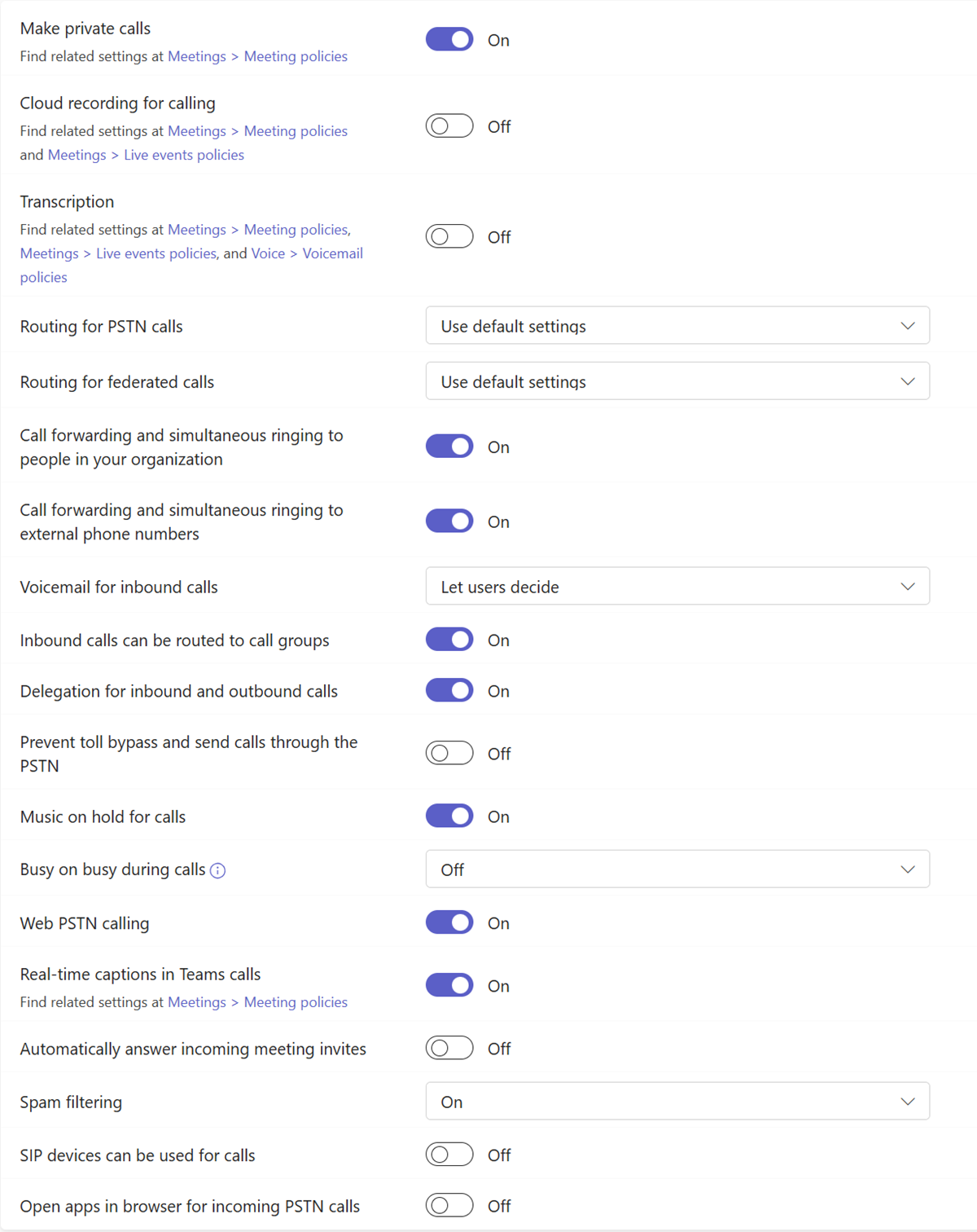 | Los usuarios pueden editar las reglas de respuesta de llamadas | Activado | Esta configuración controla si el usuario puede configurar reglas de respuesta de llamadas de correo de voz en Microsoft Teams. |