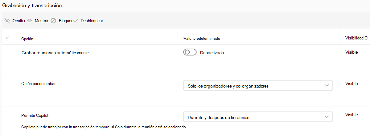| Cifrado de reuniones de un extremo a otro | No está habilitado, pero los usuarios pueden habilitar | Esta configuración determina si las reuniones cifradas de un extremo a otro están disponibles para los usuarios. Esta configuración requiere una licencia de Teams Premium. Obtenga más información sobre cómo requerir cifrado de un extremo a otro para las reuniones confidenciales de Teams. |