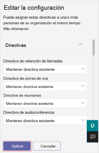 Selecciona la directiva que quieras cambiar y luego selecciona Aplicar.