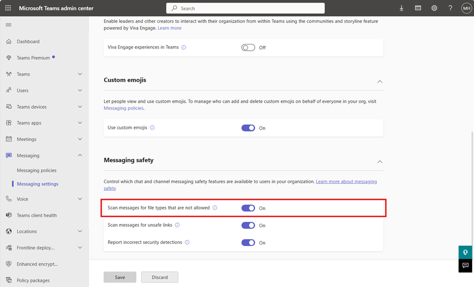 Set-CsTeamsMessagingConfiguration -FileTypeCheck "Enabled" -Identity Global