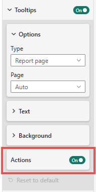 Puede desactivar la información sobre herramientas de cualquier elemento visual en las opciones de formato visual. Si desea tener control completo sobre una información sobre herramientas visual, puede crear una página de informe de información sobre herramientas visual y usarla en lugar de la información sobre herramientas predeterminada.
