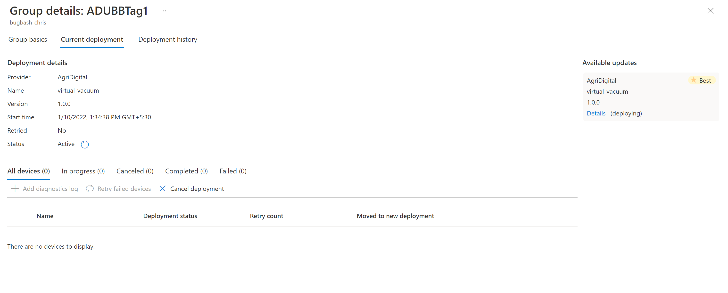 Una vez creado el grupo, debería ver una nueva actualización disponible para el grupo de dispositivos. Un vínculo a la actualización debe estar en Mejor actualización. Puede que tenga que actualizar la página una vez. Más información sobre el cumplimiento de actualizaciones.