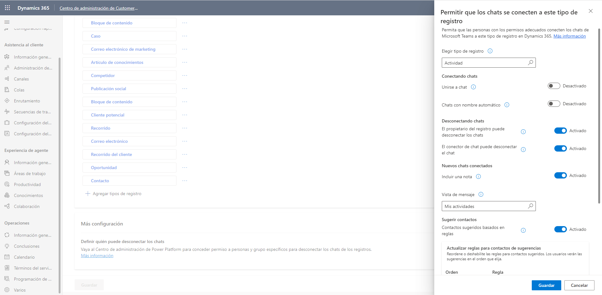 Activar la integración mejorada de Microsoft Teams: le permite anclar registros y vistas a un canal de Teams directamente desde Dynamics 365 y sugiere miembros que se pueden agregar.